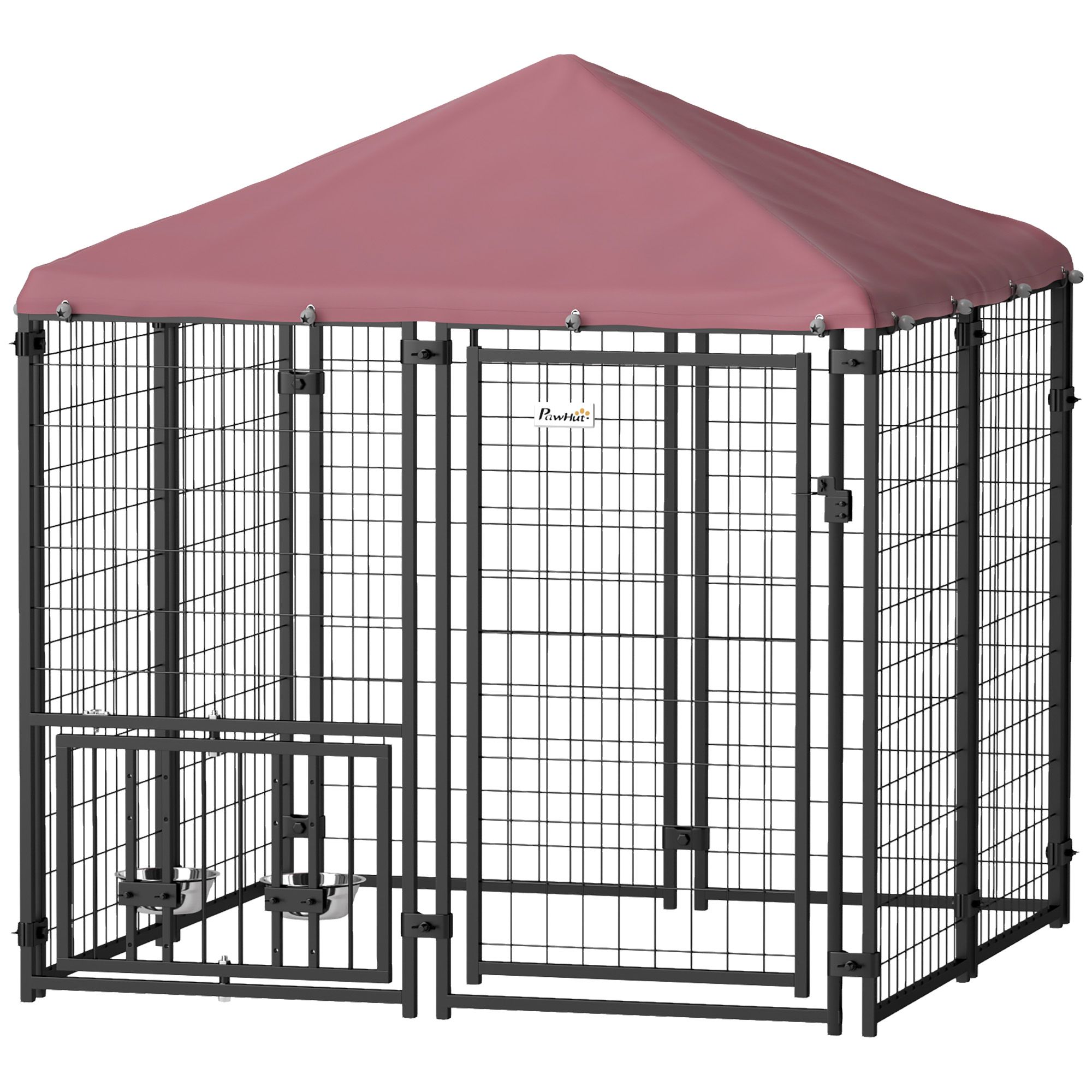 Get a spacious home for your furry friend with a PawHut large outdoor dog kennel. It has water-safe wire, a top cover with a solid metal roof frame, a lockable gate, and ample room for your dog. It's a practical kennel for your dog. This solid outdoor dog run can be used outside or inside; it's easy to assemble or disassemble and requires almost zero maintenance.